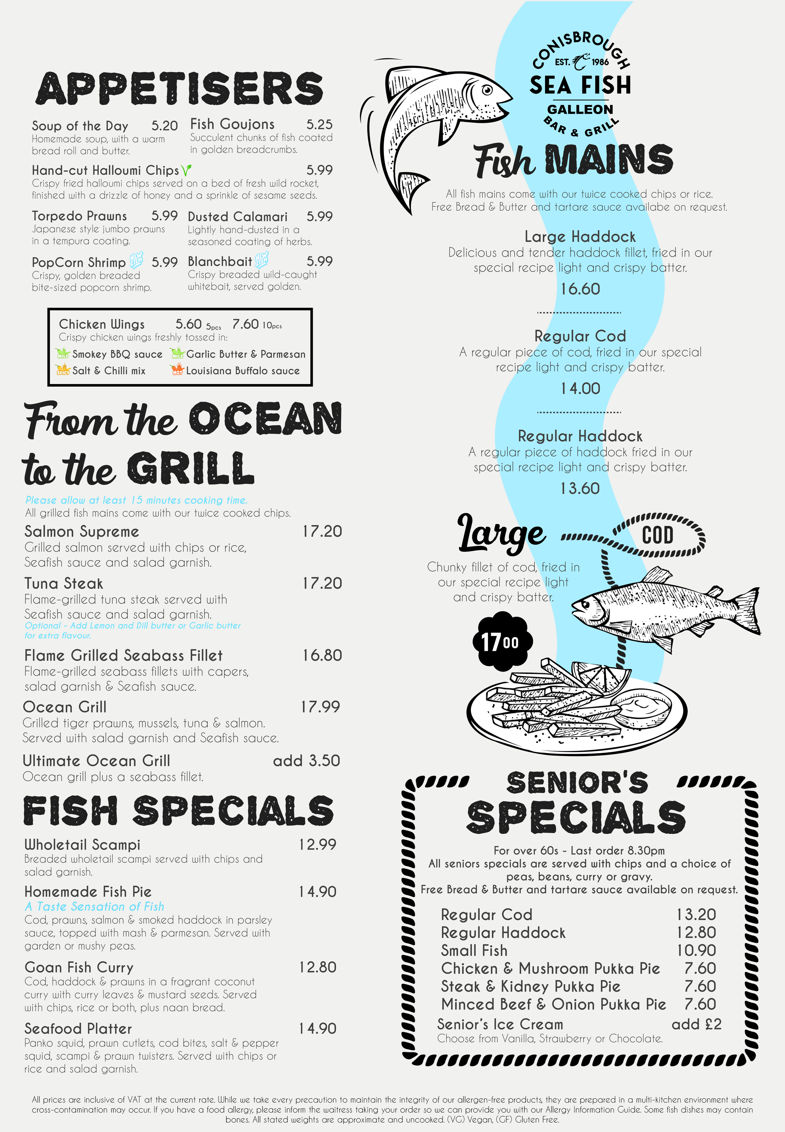 Here at SeaFish Restaurant we take pride in only using the very best ingredients in order to produce food of the highest quality.
